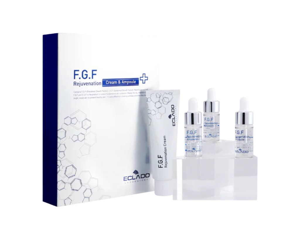 Ošetření ECLADO Down Aging je založeno na synergii aktivních složek FGF (Fibroblast Growth Factor) a EGF (Epidermal Growth Factor), které aktivují produkci kolagenu a elastinu v hlubokých vrstvách pokožky – slibují skutečný efekt „rekonstrukce pokožky“.